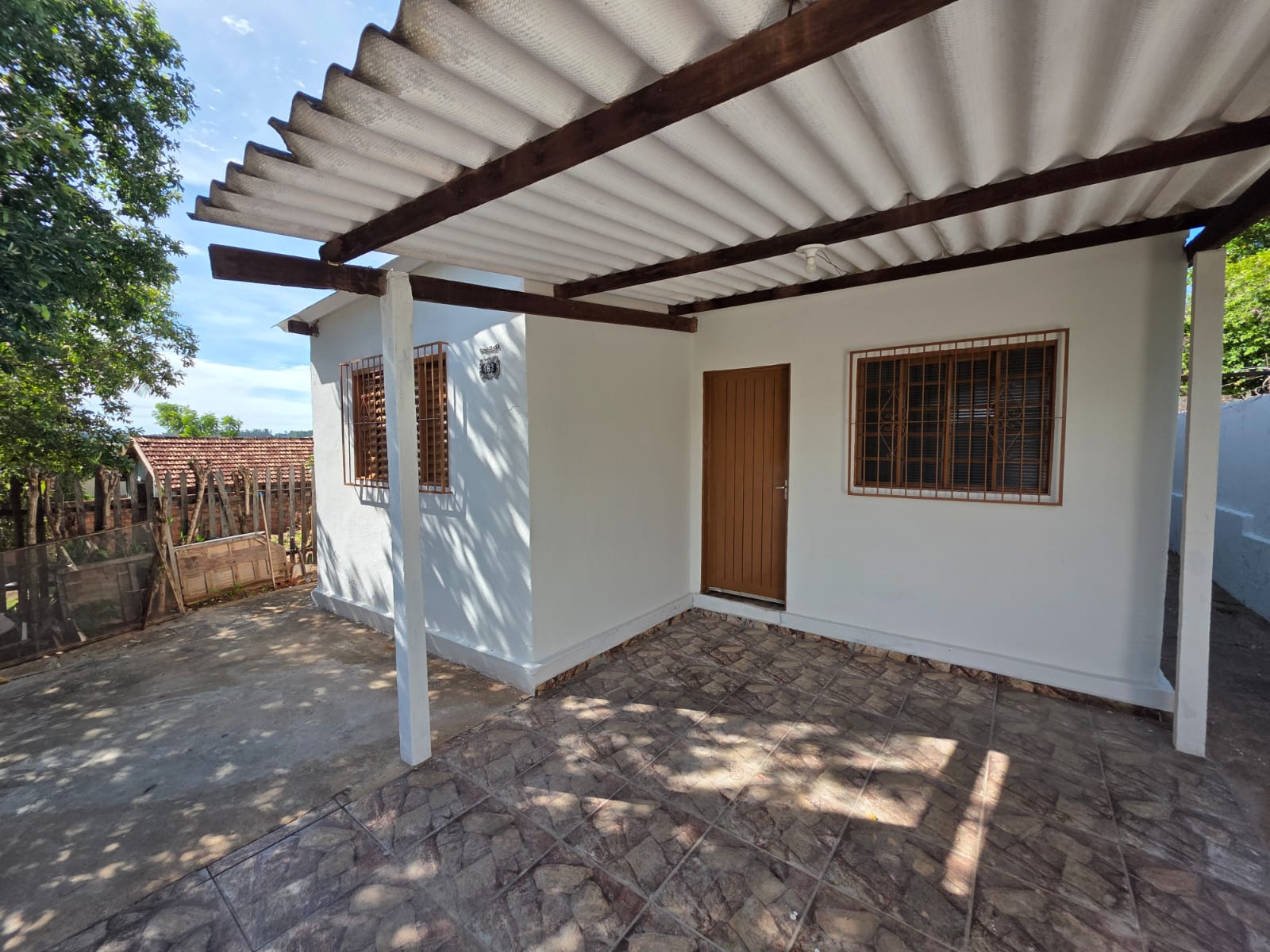 Imóvel contendo três quartos, sala, cozinha, banheiro, lavanderia, garagem para 1 carro, cobertura telha de fibrocimento e forro PVC