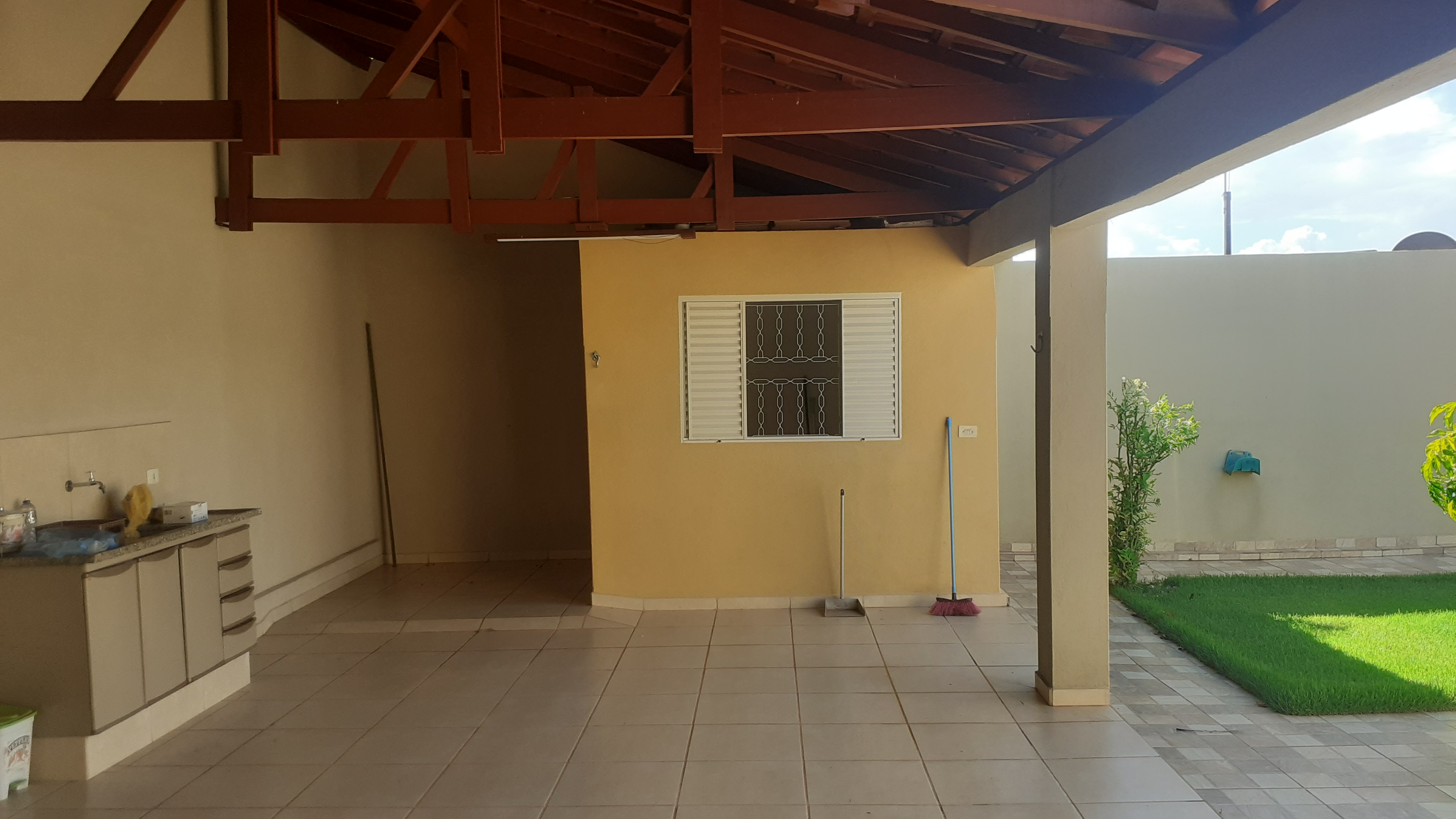 Casa com 3 Quartos sendo 1 Suíte, Sala, Cozinha com moveis Planejados, Escritório, Banheiro Social e Externo, Lavanderia. Garagem para 3 Carros com Portão Eletrônico.